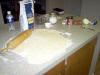 Turn oven to at least 450 F. Form dough into circle (like a pizza) if possible. It's ok to roll the dough out on the counter but make sure you have flour under the dough. Otherwise you'll have a to start over again- dough adheres nicely to kitchen counters.